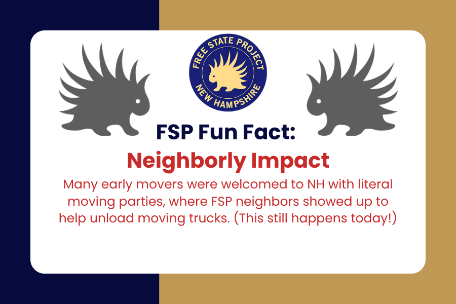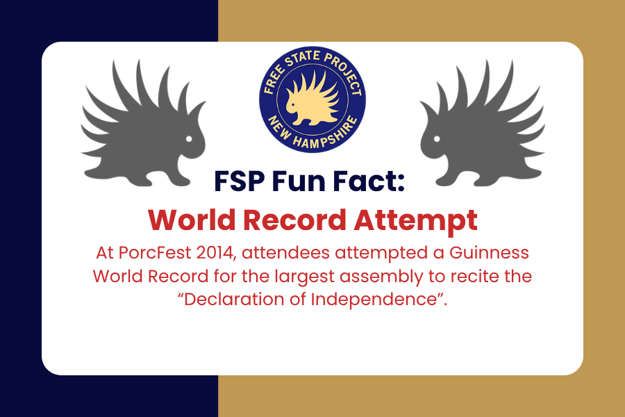 Launch of the Porcupine Freedom Festival (PorcFest) in New Hampshire, a now-iconic annual gathering of freedom-minded people.