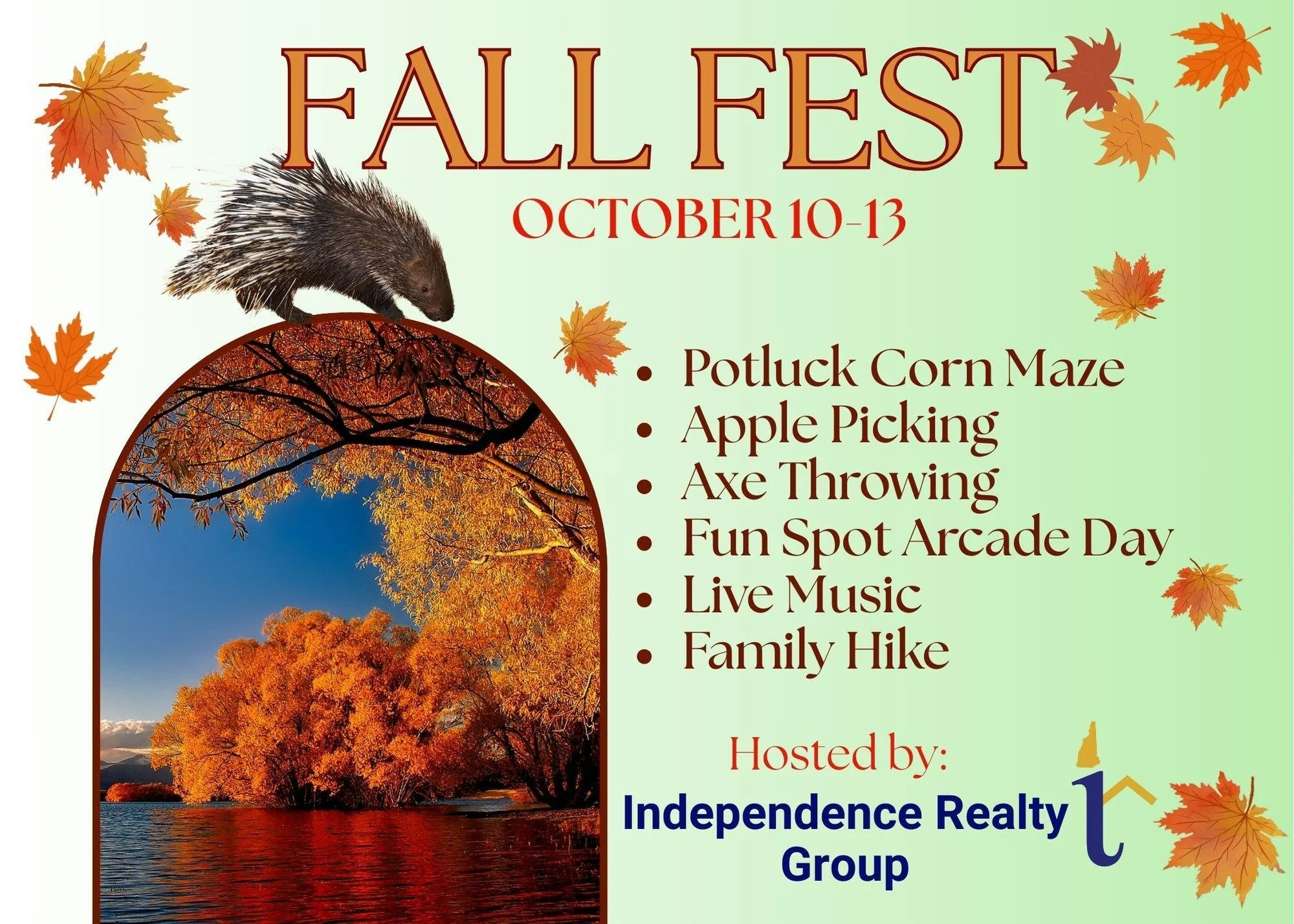 For the entire three-day "Columbus Day" weekend (October 11-13), our friends at Independence Realty are organizing several family-friendly events across the state.