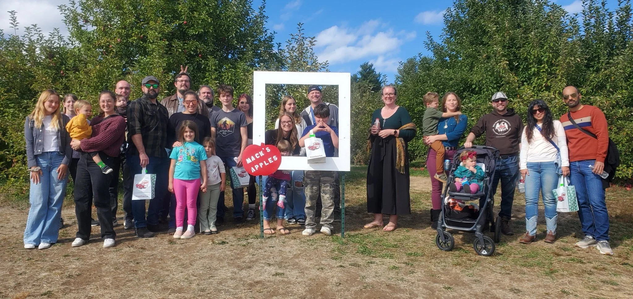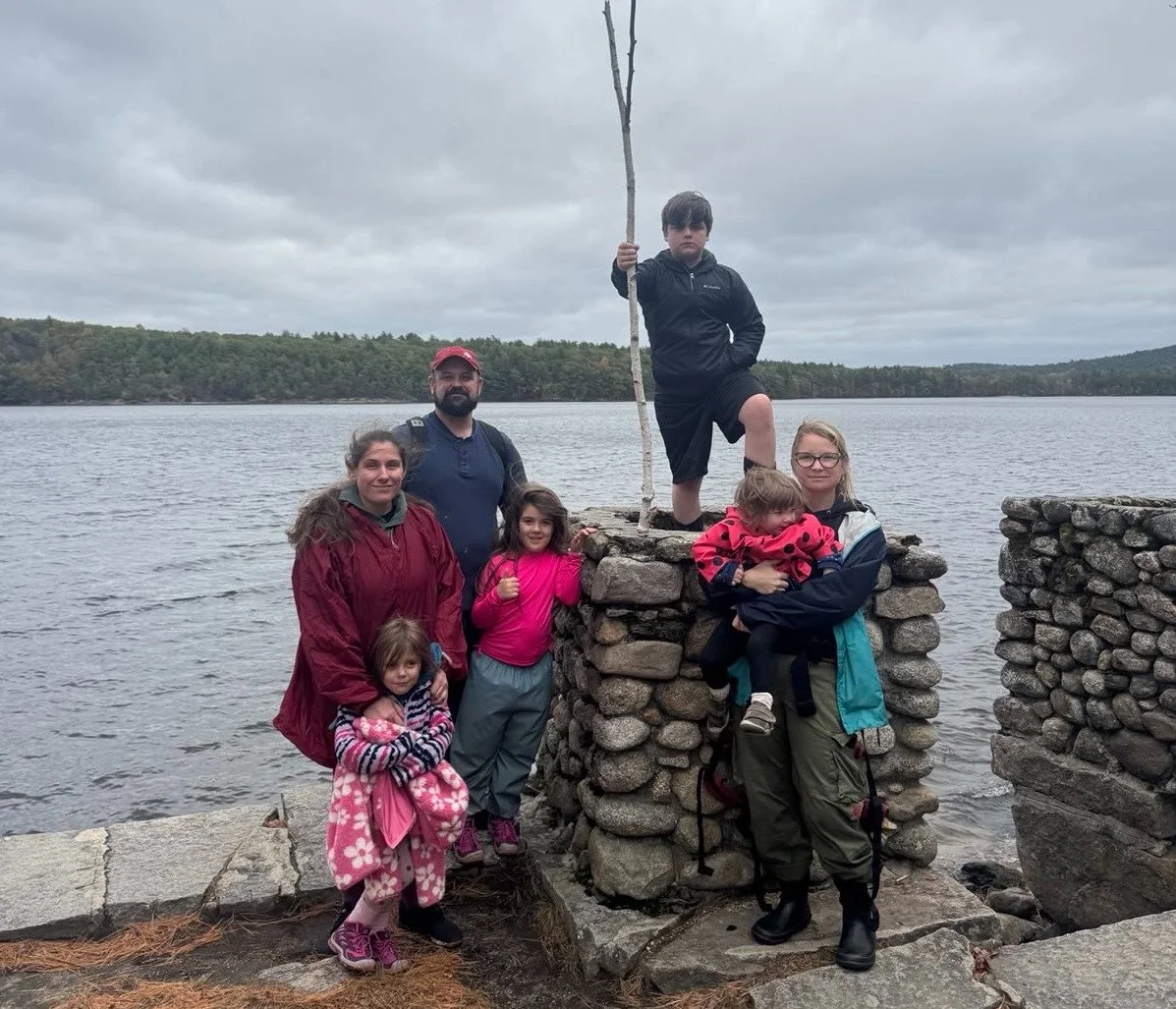 It was a cold day on Columbus Day, but we endured. At the end of the trail, participants in the Fall Fest Family-Friendly Hike took a victory photo in front of Massabesic Lake.