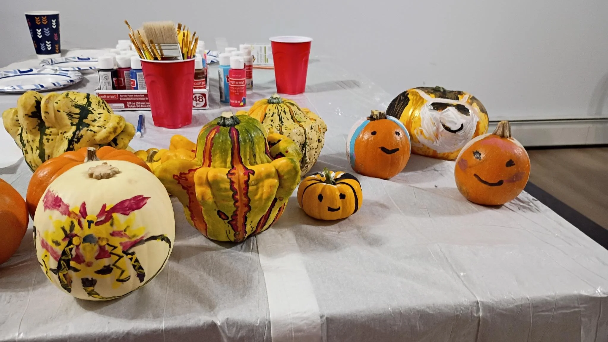 Pumpkins painted by kiddos at the Agora market in Concord!