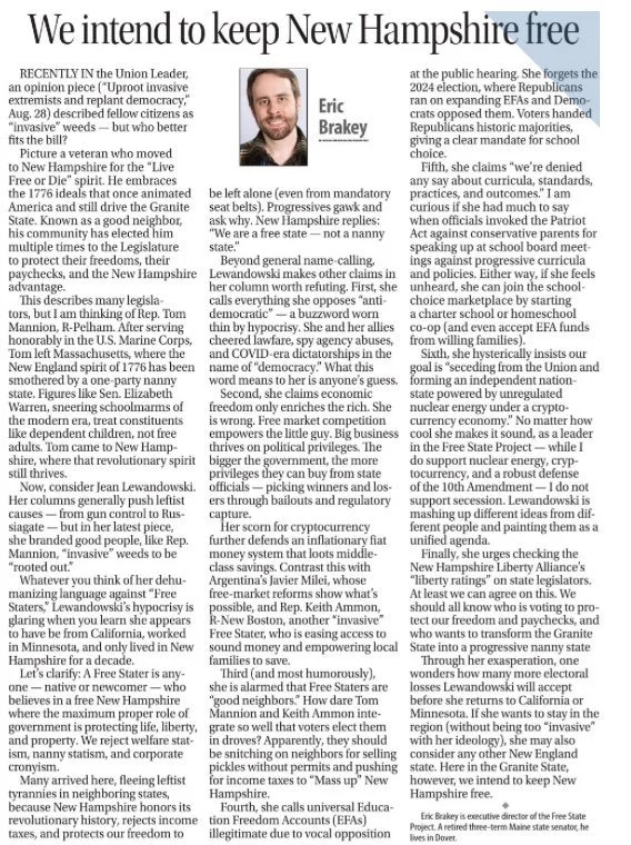 Union Leader: Eric Brakey: We intend to keep New Hampshire free