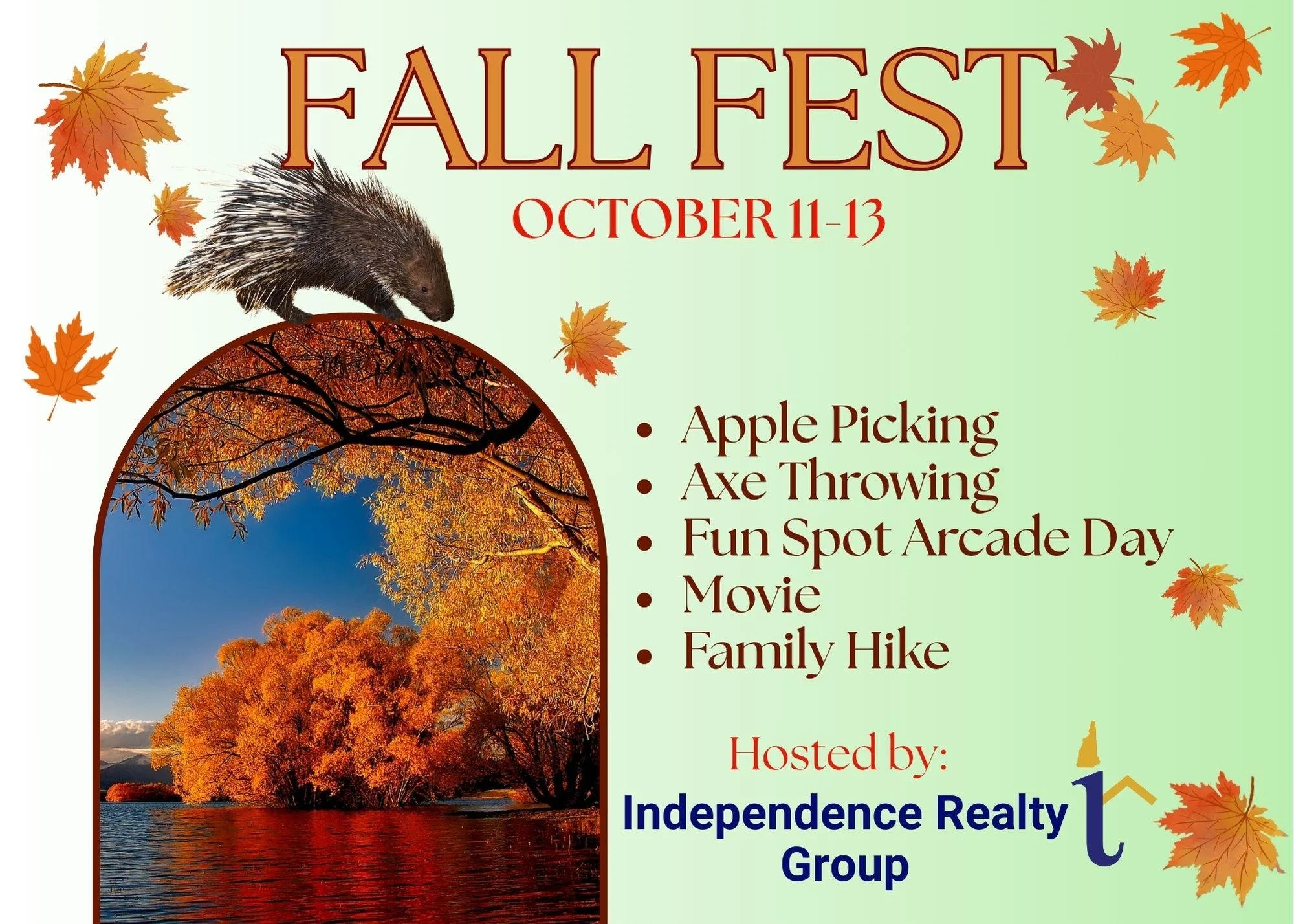 For the entire three-day "Columbus Day" weekend (October 11-13), our friends at Independence Realty are organizing several family-friendly events across the state.