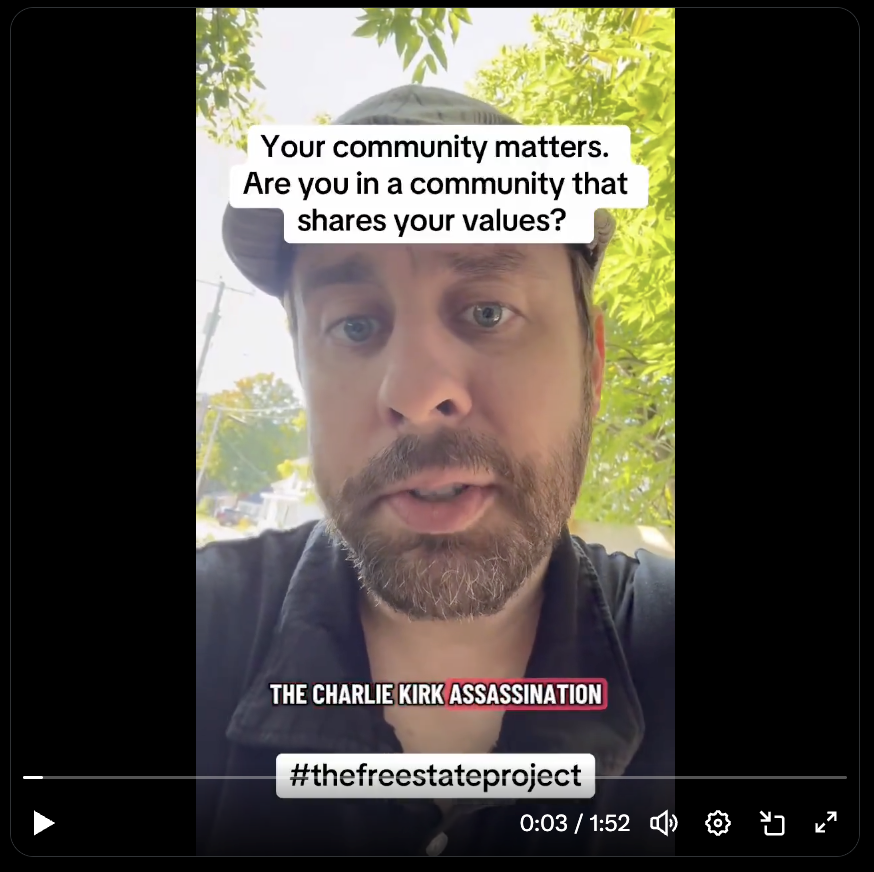 In her daily video, Carla Gericke (FSP Board Chair) reflects on the assassination of Charlie Kirk and the dehumanizing rhetoric from local progressives calling Free Staters "invasive" weeds that must be "rooted out."
