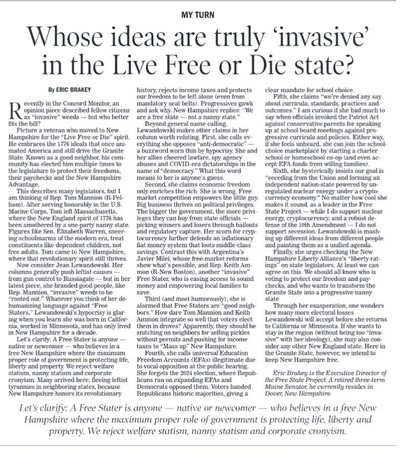 Last week, I told you about the attack piece published in the Concord Monitor, labeling Free Staters as "invasive" weeds to be "rooted out."